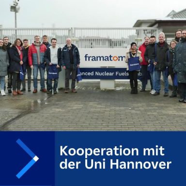 Am 13. Februar 2025 besuchte eine Gruppe von Studierenden der Universität Hannover unseren Standort Lingen, um einen praxisnahen Einblick in den Brennstoffkreislauf zu erhalten. Nach einer Unternehmensvorstellung und einer Fragerunde zu Kerntechnik und Strahlenschutz folgte eine Werksführung, bei der die Gäste unsere hohen Sicherheits- und Qualitätsstandards hautnah erleben konnten. Zudem stellten wir unsere Karrieremöglichkeiten vor. Die Veranstaltung stärkte unsere Kooperation mit der Universität Hannover und bot eine wertvolle Gelegenheit, Nachwuchstalente für unseren Standort zu begeistern.