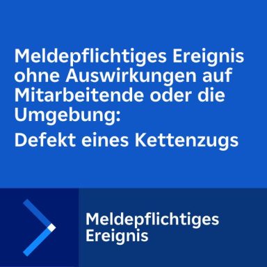 Meldepflichtiges Ereignis ohne Auswirkungen auf Mitarbeitende oder die Umgebung – Defekt eines Kettenzugs