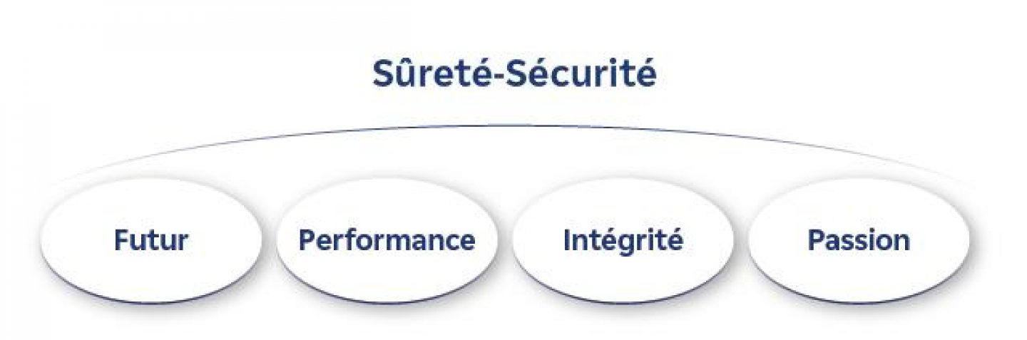 En les faisant vivre au quotidien et en plaçant la sûreté et la sécurité au cœur de nos actions, nous créons de la valeur ajoutée pour nos clients et nous mettons en place une culture d’excellence.
